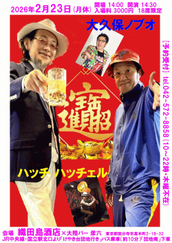 2月23日(月・祝)ノブハチ(大久保ノブオ×ハッチハッチェル)@国分寺 織田島酒店×大陸バー彦六