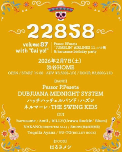 2月7日(土)"22858 vol. 37" with "Cai yo!" ~ Pessor P.Peseta 'JUMBLIN' AIRLINES 11, L 738 & harusame birthday party ~@渋谷HOME